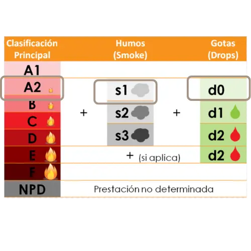 Los paneles sandwich de lana de roca destacan por su alta resistencia al fuego, con clasificaciones como EI 60, EI 90 o EI 120, dependiendo de su grosor. Su núcleo de lana de roca tiene clasificación A2-s1,d0, (material no combustible) según la norma EN 13501-1, ofreciendo máxima seguridad en caso de incendios.